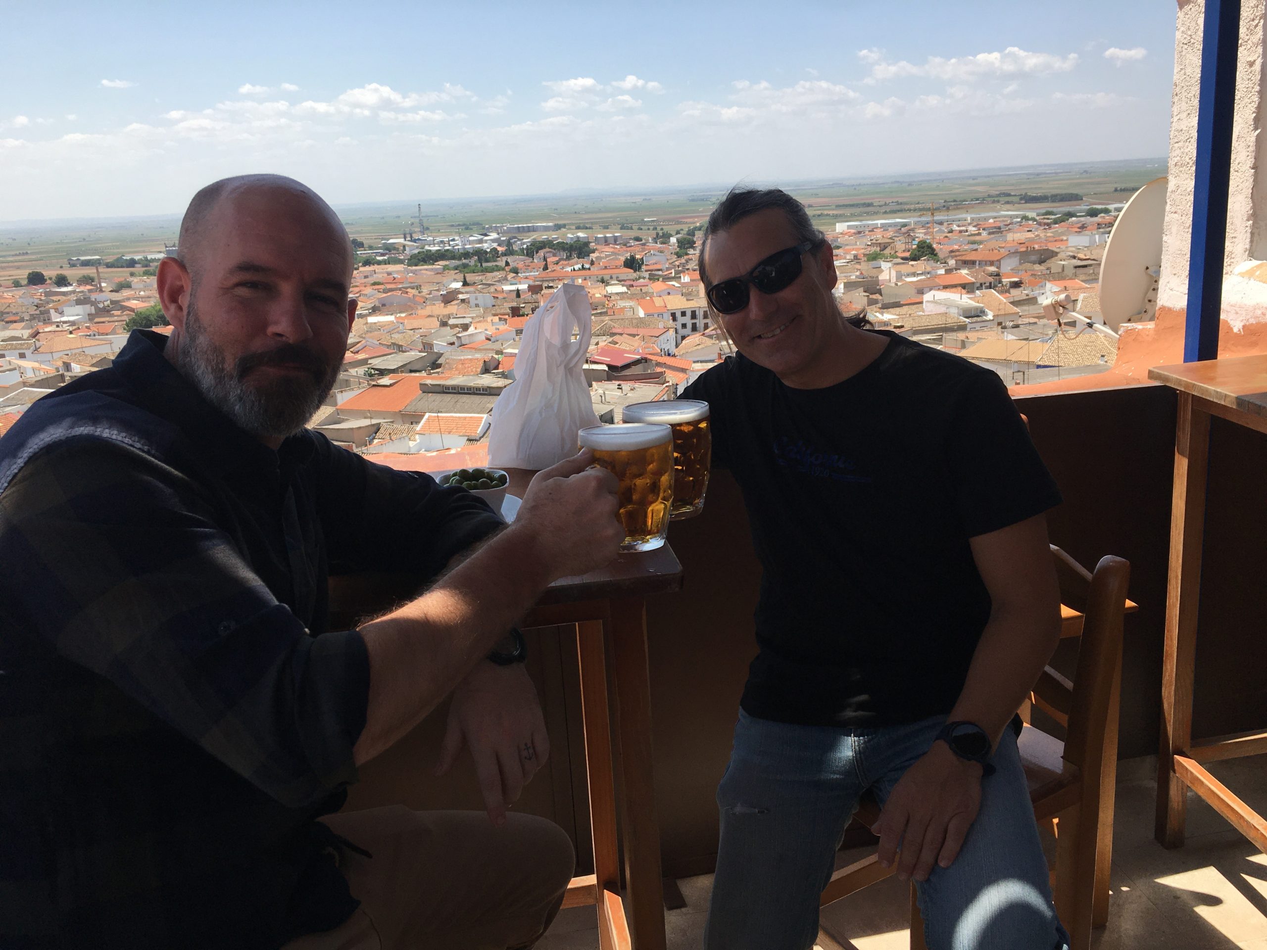 Además pudimos observar unas bonitas vistas a Campos de Criptana en el Bar Mirador que se encontraba enfrente de los molinos y celebramos la llegada a nuestra meta con una buena pinta y en compañía de una pareja sevillana que también iba en moto.