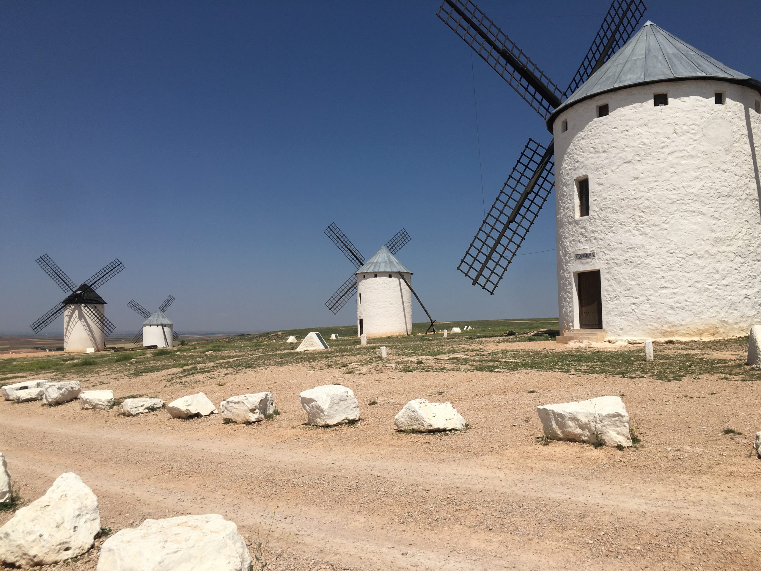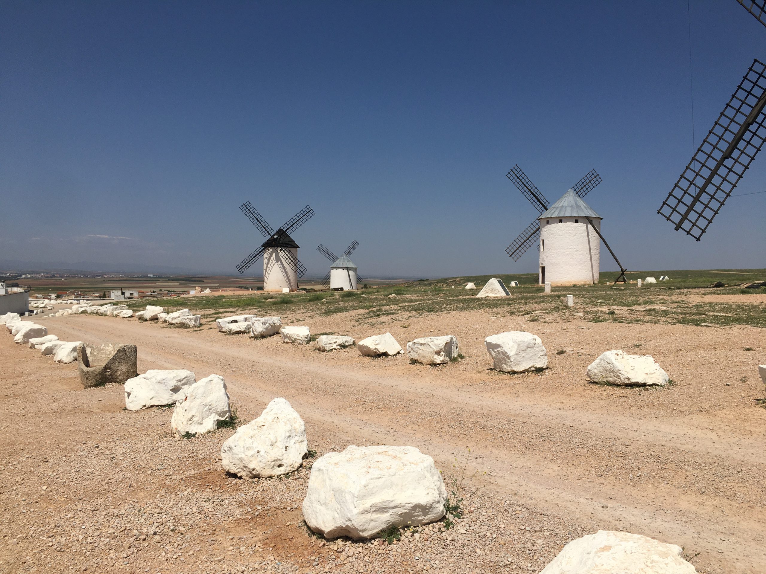 A la llegada pudimos deleitarnos viendo los siete molinos y fantaseando con que por aquellas tierras que nos encontrábamos se inspiró el escritor.