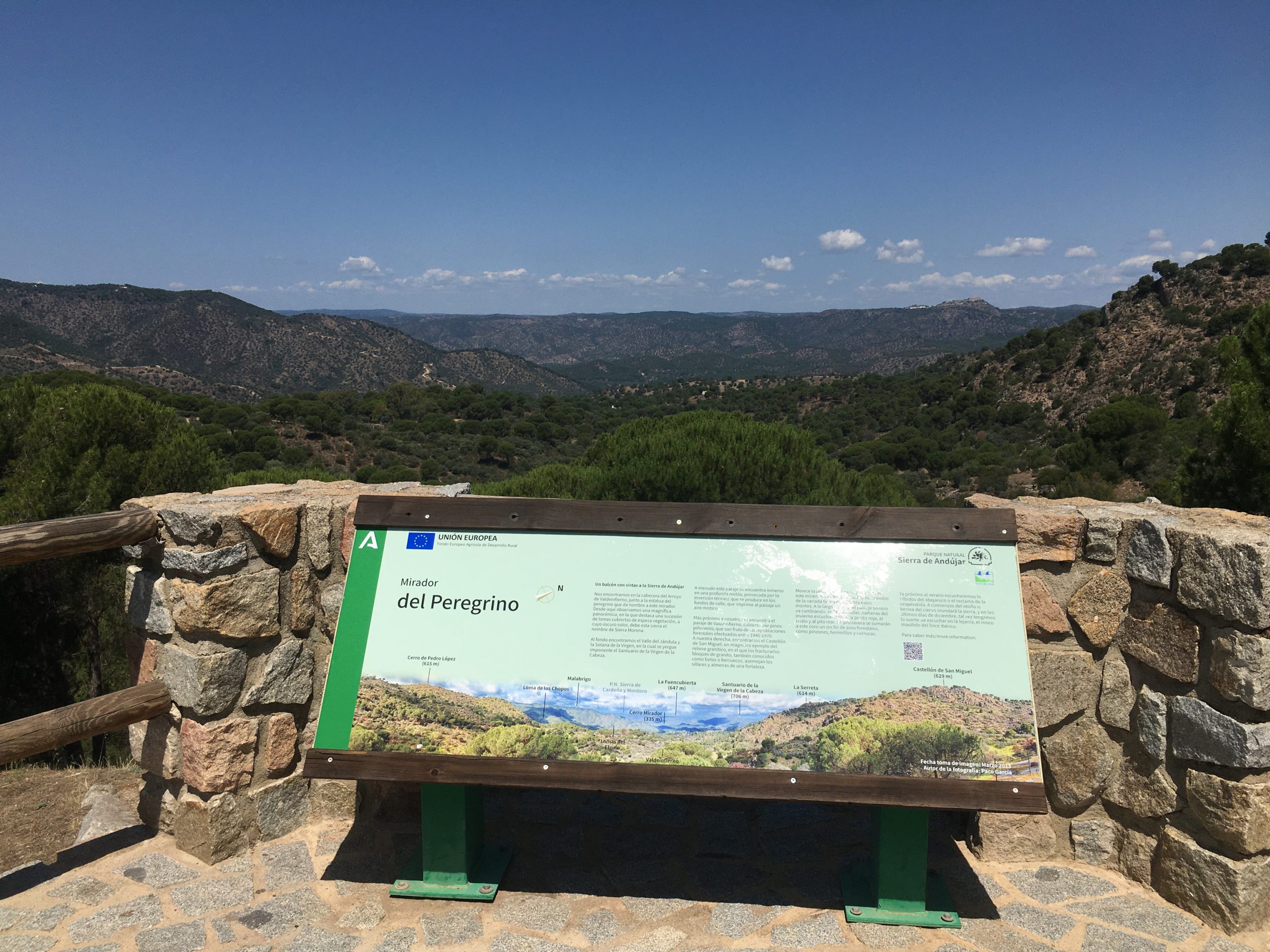Proseguimos con la ruta, hicimos una parada en el mirador del peregrino, un lugar con vistas preciosas a toda la sierra la cual se puede divisar el Santuario de la Virgen de la cabeza, el parque nacional de la sierra de Cardeña y Montoro, el Malabrigo, entre otros muchos parajes.