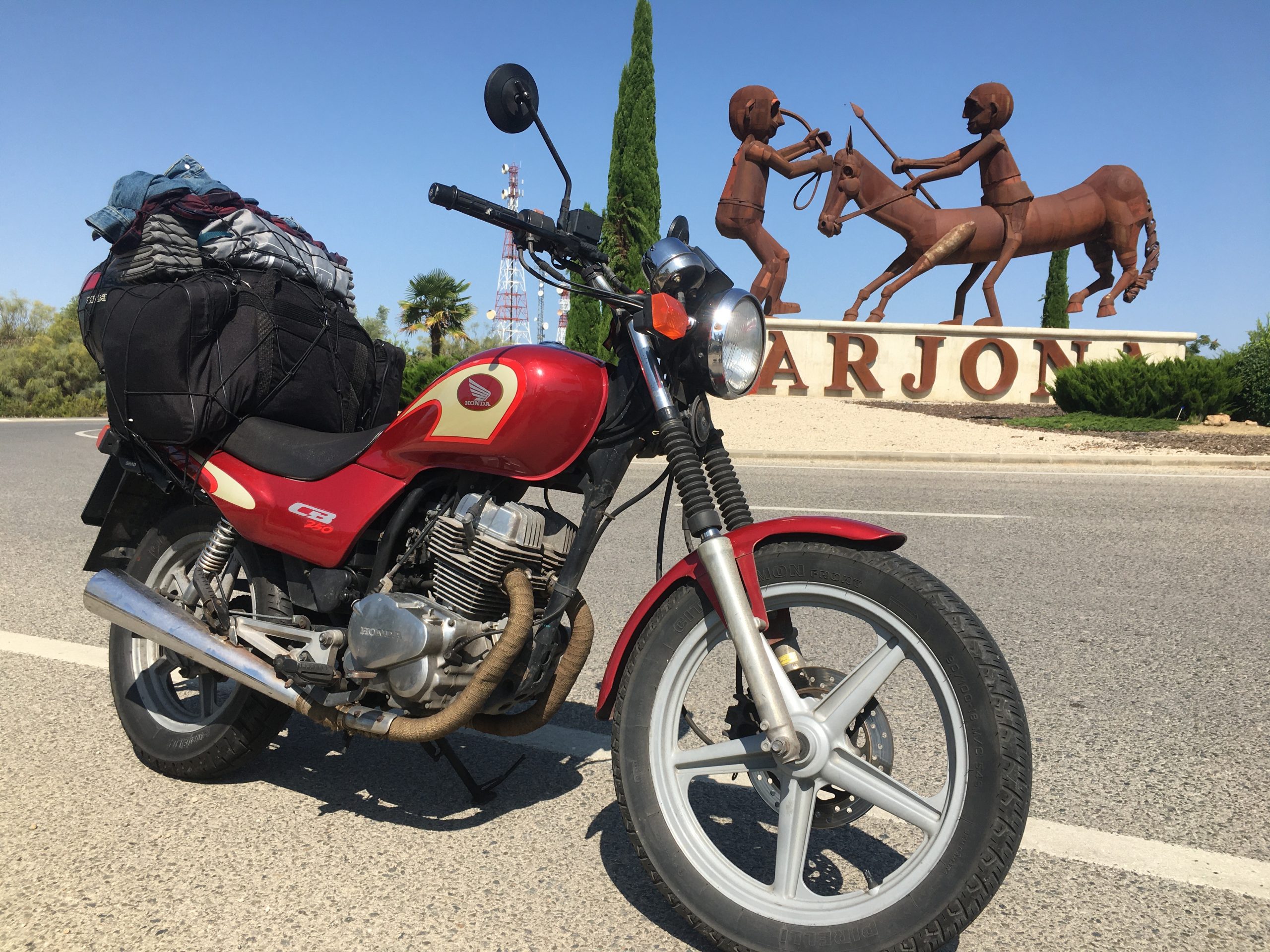 Desde allí y después de comer nos dirigimos por una carretera idónea para ir en moto y bastante desierta hacia Almagro donde llegamos sobre las 18:00 al camping para darnos un baño en la piscina, montar el campamento y descansar.